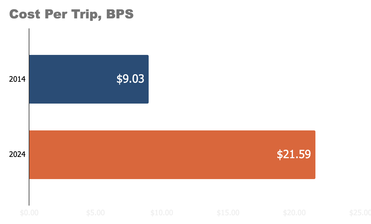 With performance still lagging in the afternoons and for sports, Boston is spending more money to bus less kids. By how much? When measured by the actual number of bus rides provided, busing costs have increased by 239% since 2014.