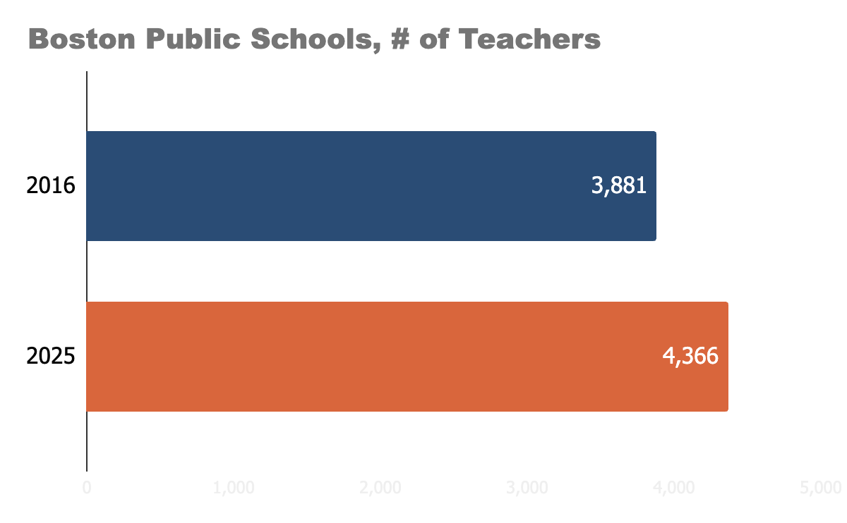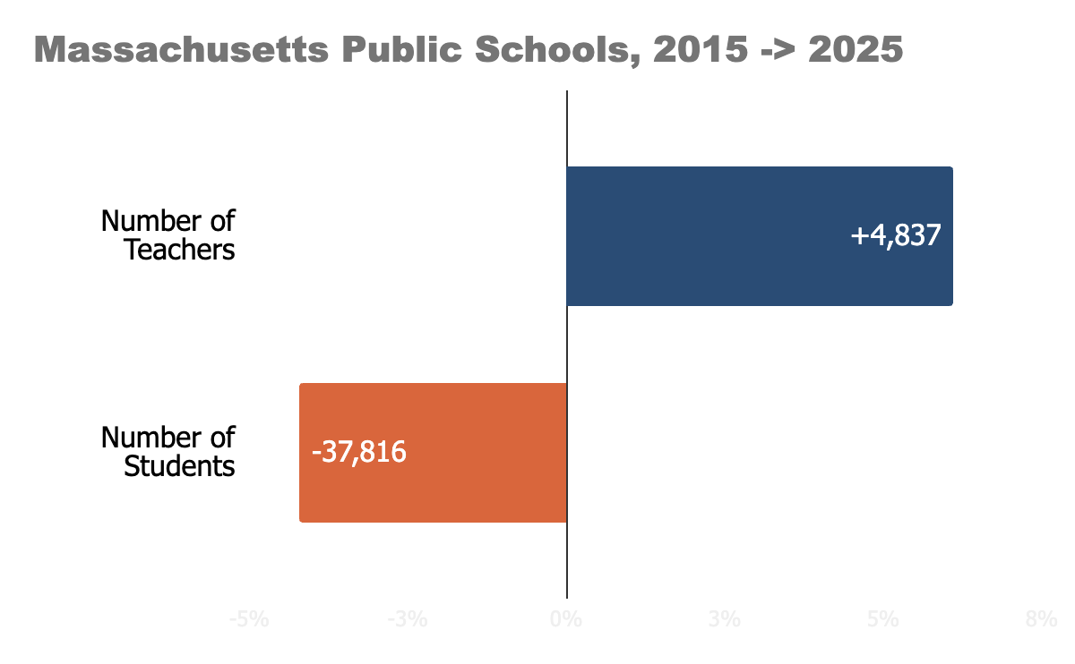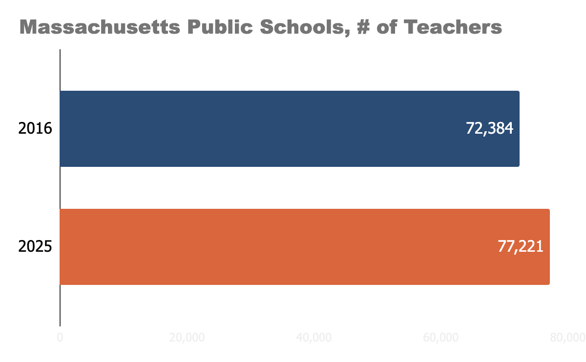 Massachusetts employs ~8% more teachers than it did a decade ago.