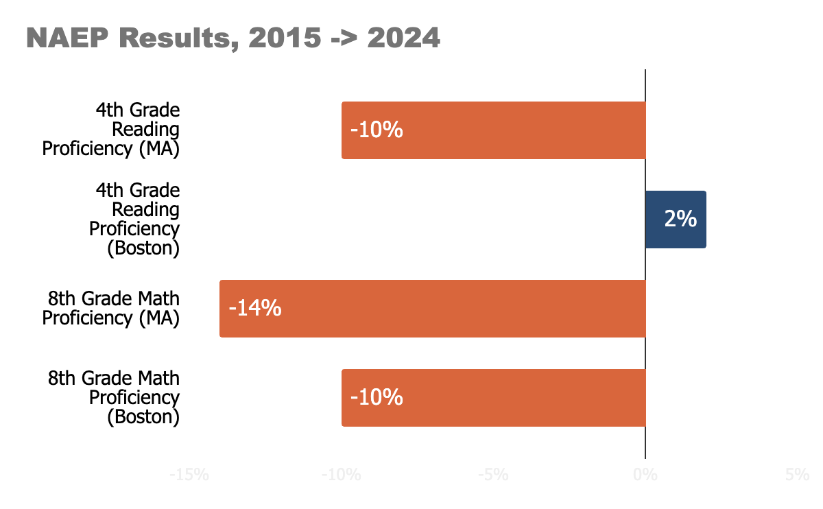 Except that the National Assessment of Educational Progress (NAEP), the “Nation’s Report Card,” does not show that at all.