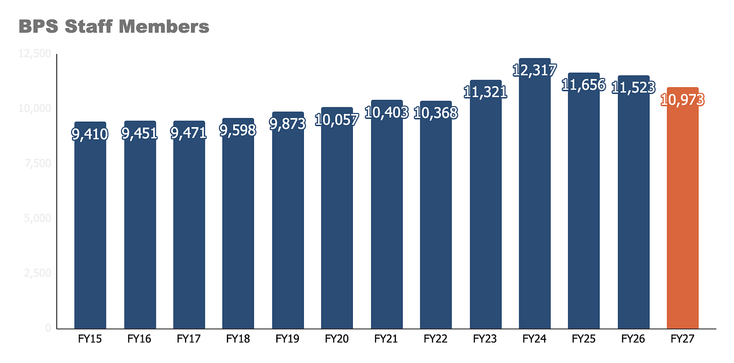 So, with almost nothing left to cut, BPS has only one option left: headcount, which is why the reduction of ~550 staff members is on the table and in the headlines.