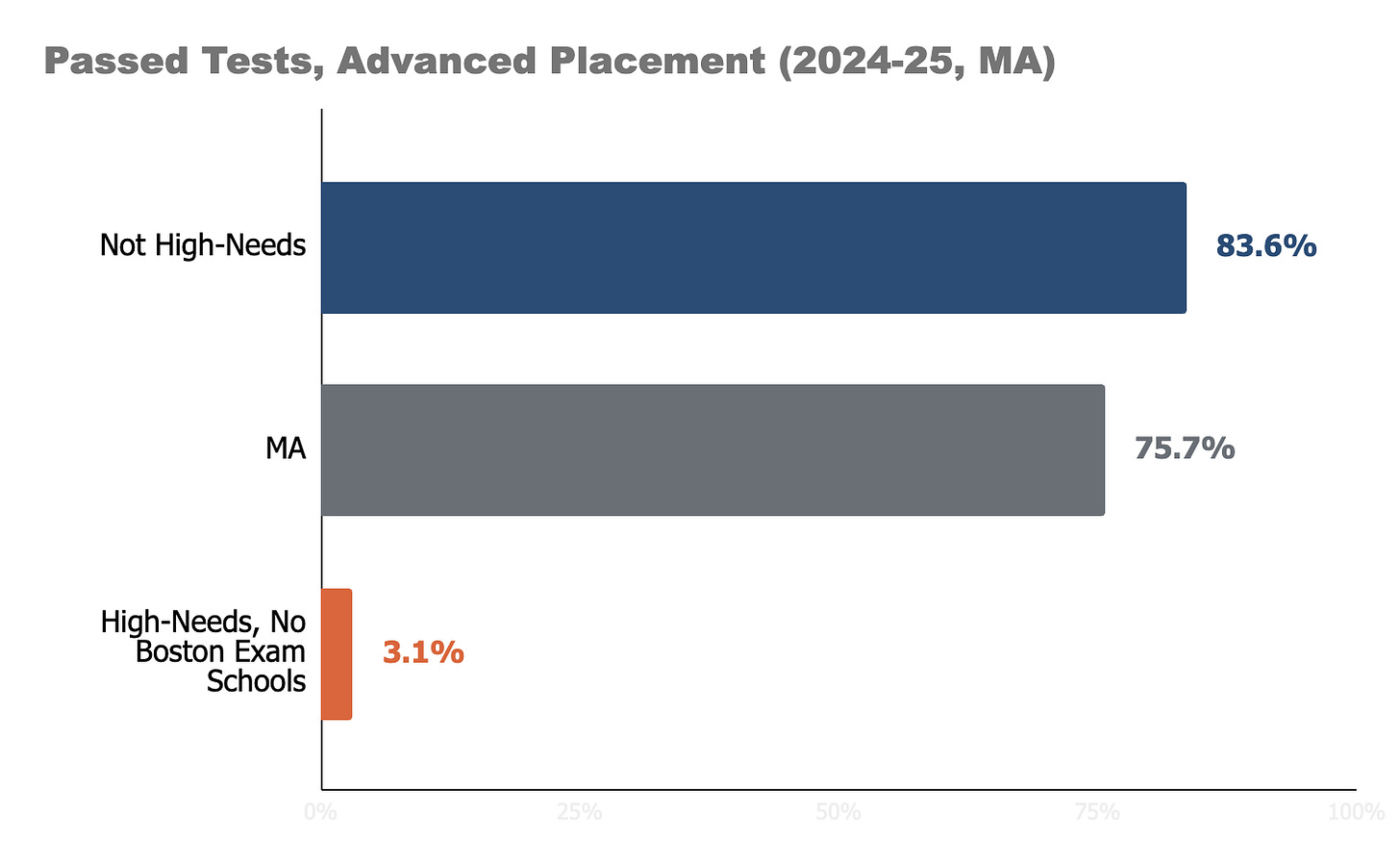 There is one remaining, big asterisk. Boston’s exam schools are included in the high needs number, and those +4,200 passed tests account for 80% of the high needs set.
