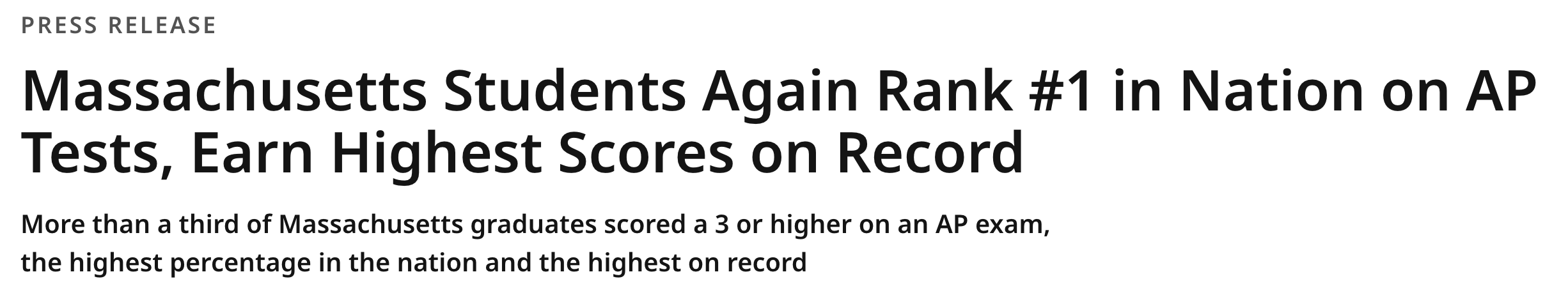Big week of headlines congratulating Massachusetts for again leading the country on Advanced Placement (AP) tests.