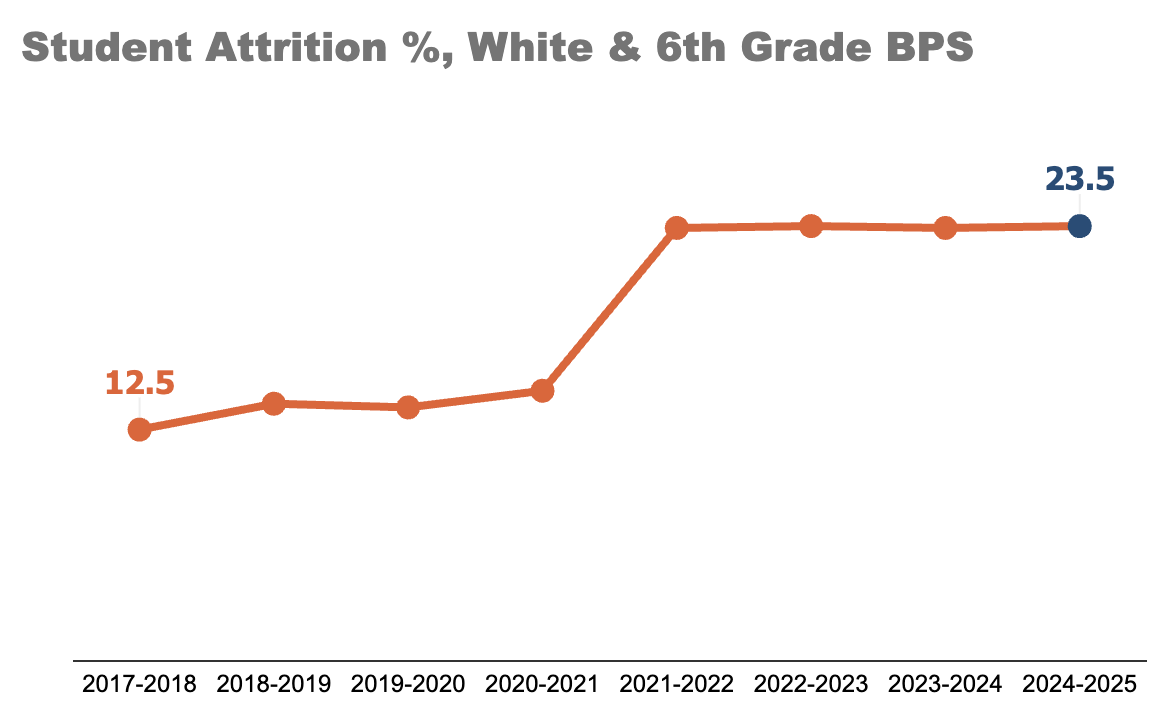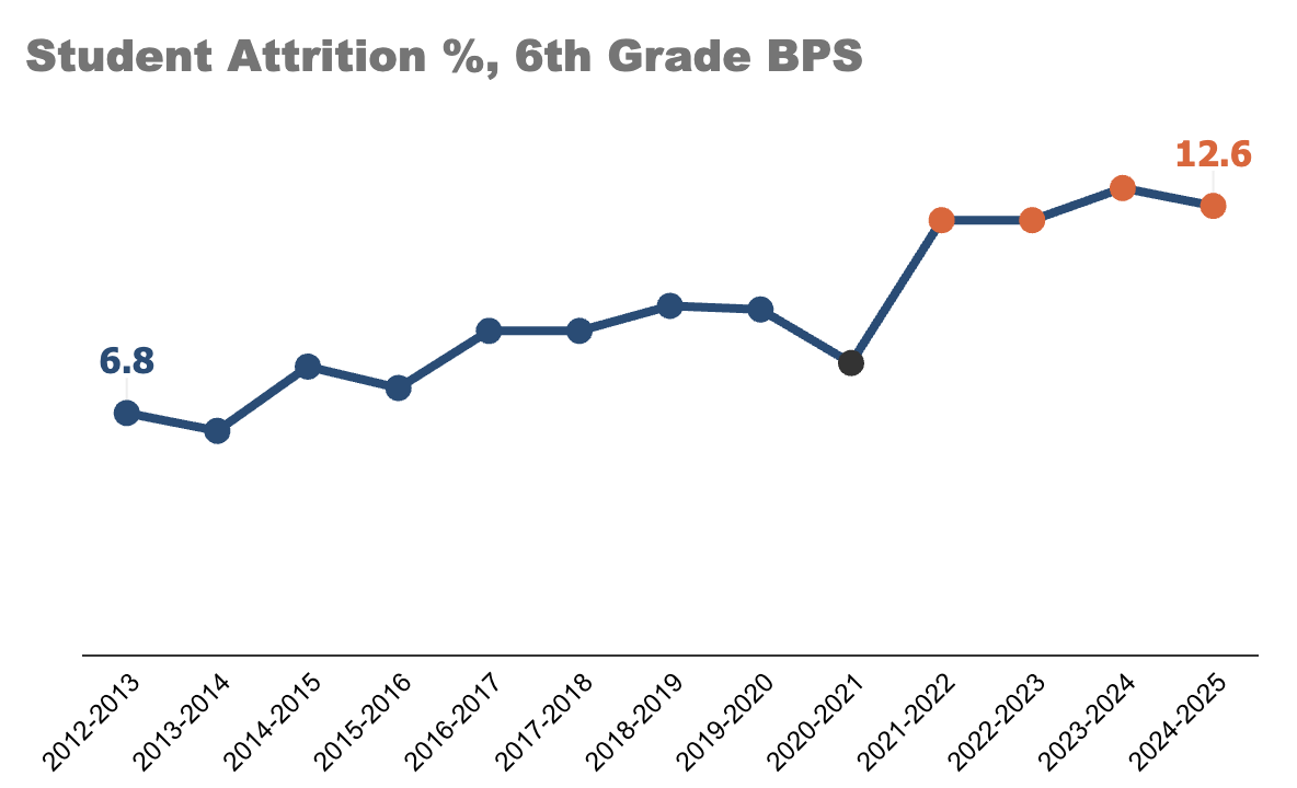 Something very different is happening in 6th grade in BPS. While attrition in all other grades has recently declined, it has nearly doubled here.