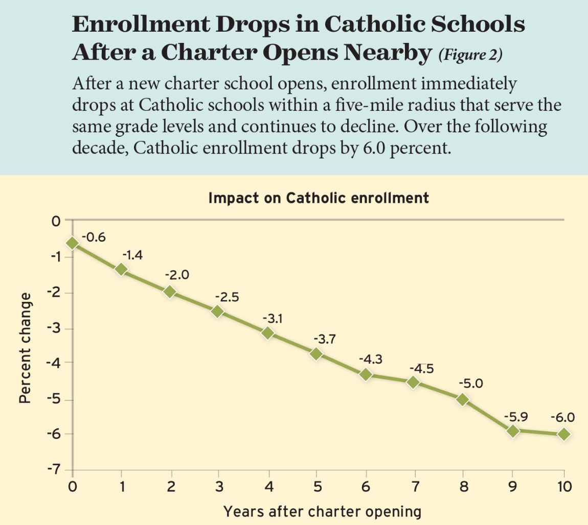 New research supports what many educators sensed over the past two decades: the scaling of charter schools corresponded with the decline of enrollment in nearby Catholic schools.